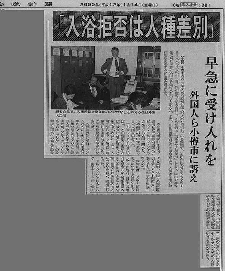 - 日本語ジャーナル2003年2月号:「外国人に対する入浴拒否は差別」