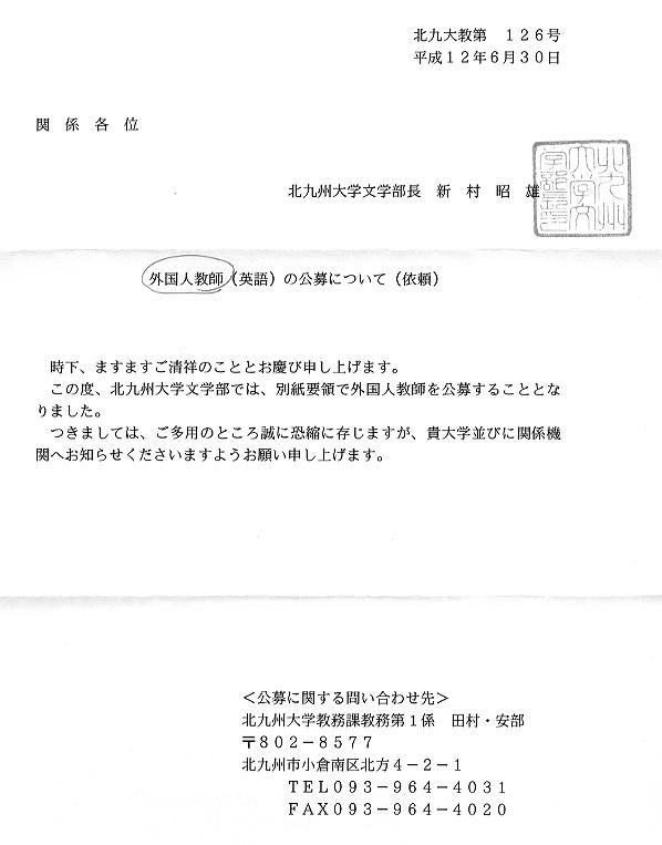KITA KYUSHU UNIVERSITY JOB POSITION ADVERTISEMENT